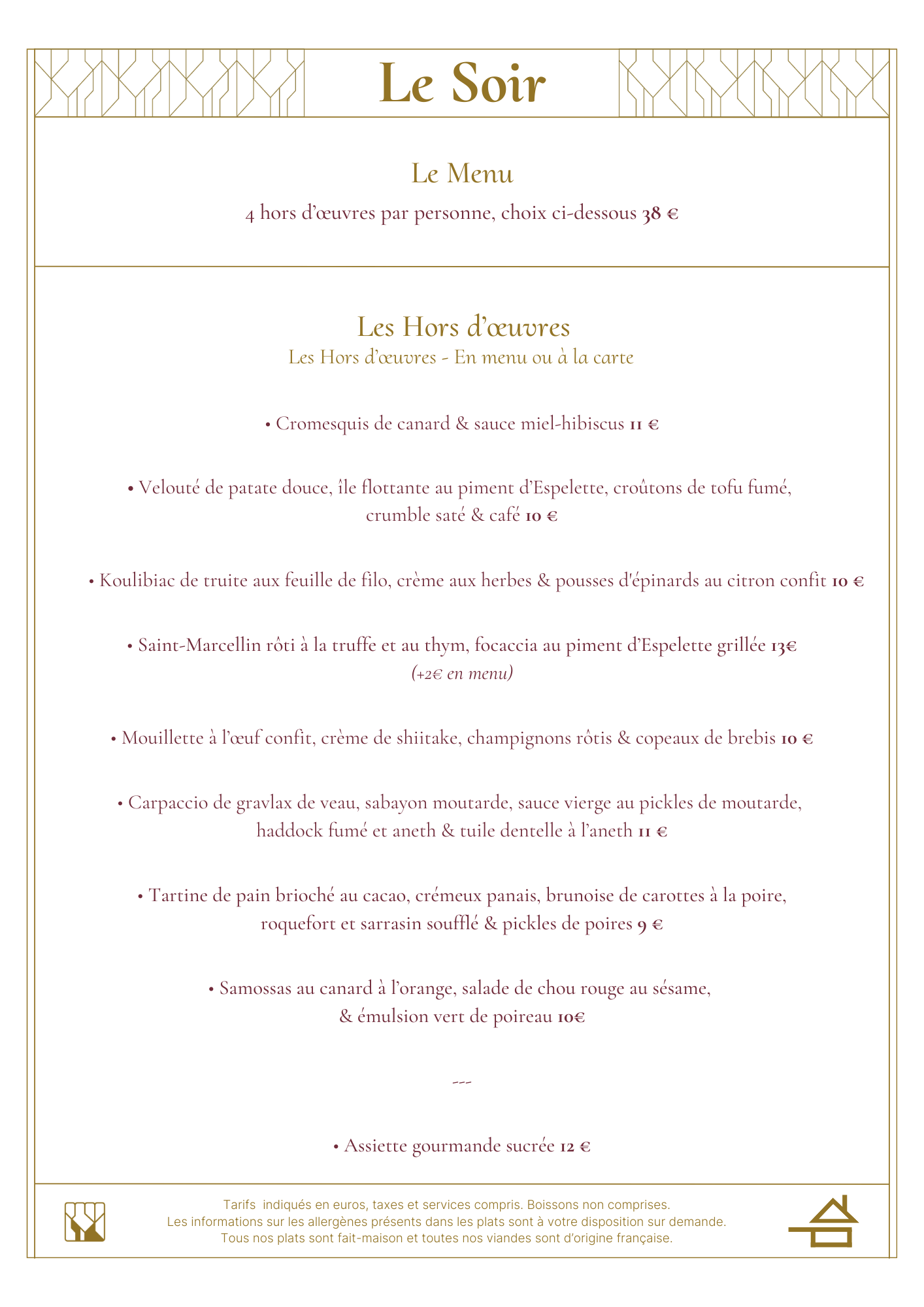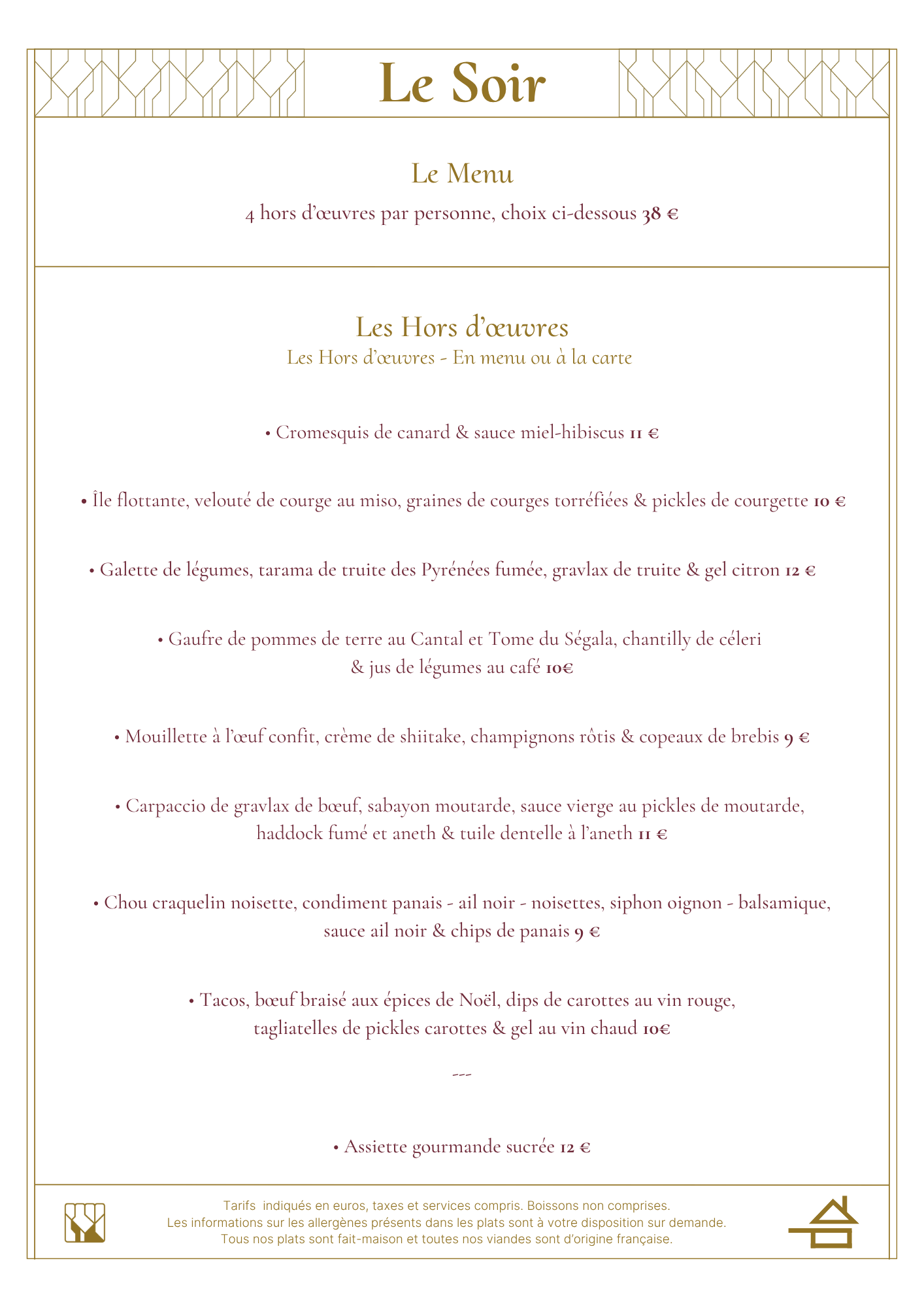 Lun-Ven : 12H – 14HLun-Sam : 17H – 22H